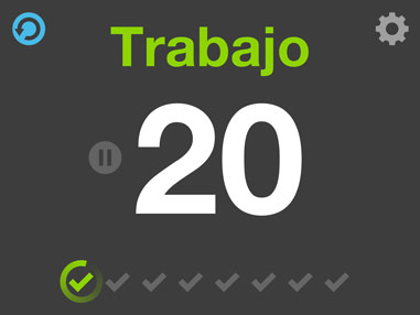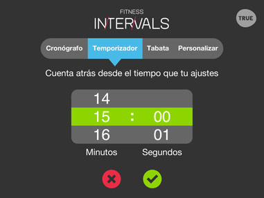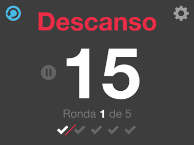Tu ajustas los periodos de trabajo/descanso y número de rondas con color, animación y refuerzo con sonido